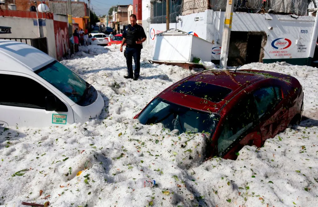 一场怪异的冰雹风暴于周日袭击了墨西哥人口最多的城市之一瓜达拉哈拉,导致车辆被困在高达两米深的 冰粒洪水中,法新社报道。该市的夏季气温达到了31摄氏度(88华氏度)。州长恩里克·阿尔法罗说:“我从未在瓜达拉哈拉见过这样的场景。然后我们问自己气候变化是否真实。”