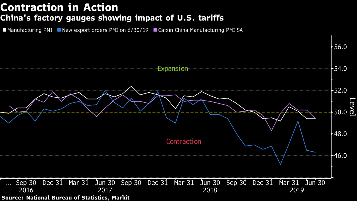 来自中国制造业的最新数据显示,经济依然脆弱,这突显了全球投资者需要上周末与美国达成的停火协议能够持久的重要性。中国6月份的制造业采购经理人指数在周日低于预期,而财新制造业PMI在周一也未能达到预测。疲弱的数据表明,上半年复苏进一步减弱,而衡量新出口订单的制造业子指数小幅下降,突显了之前关税的影响。