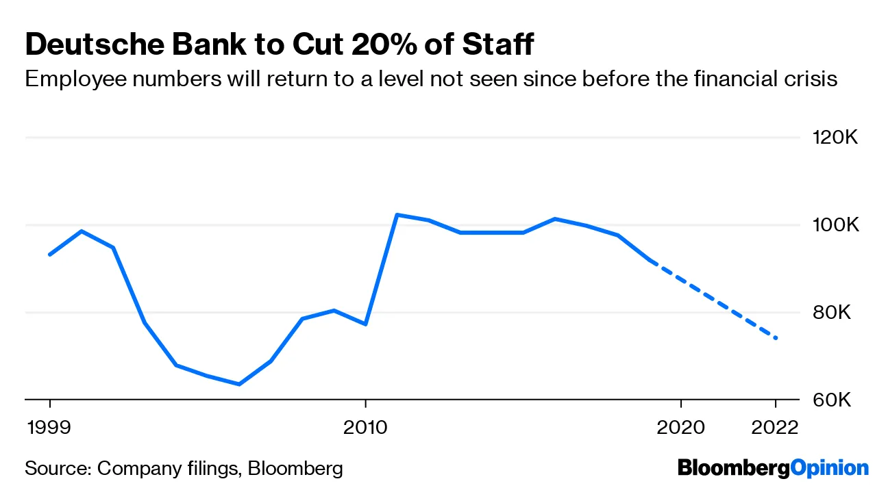 德意志银行股价上涨了6%,在欧洲早盘交易中,该银行公布了大规模变革,包括到2022年裁员18,000人,并承担74亿欧元(83亿美元)的重组费用。该公司亚太区首席执行官在一份员工备忘录中表示,这家德国贷方对该地区“绝对承诺”。