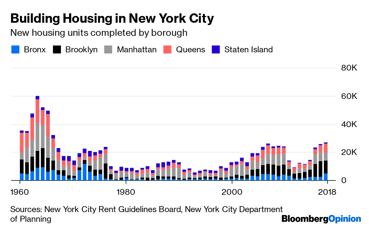 纽约长期以来通过租金管制来解决 住房短缺问题,而不是,你知道的,新住房,写道贾斯廷·福克斯。