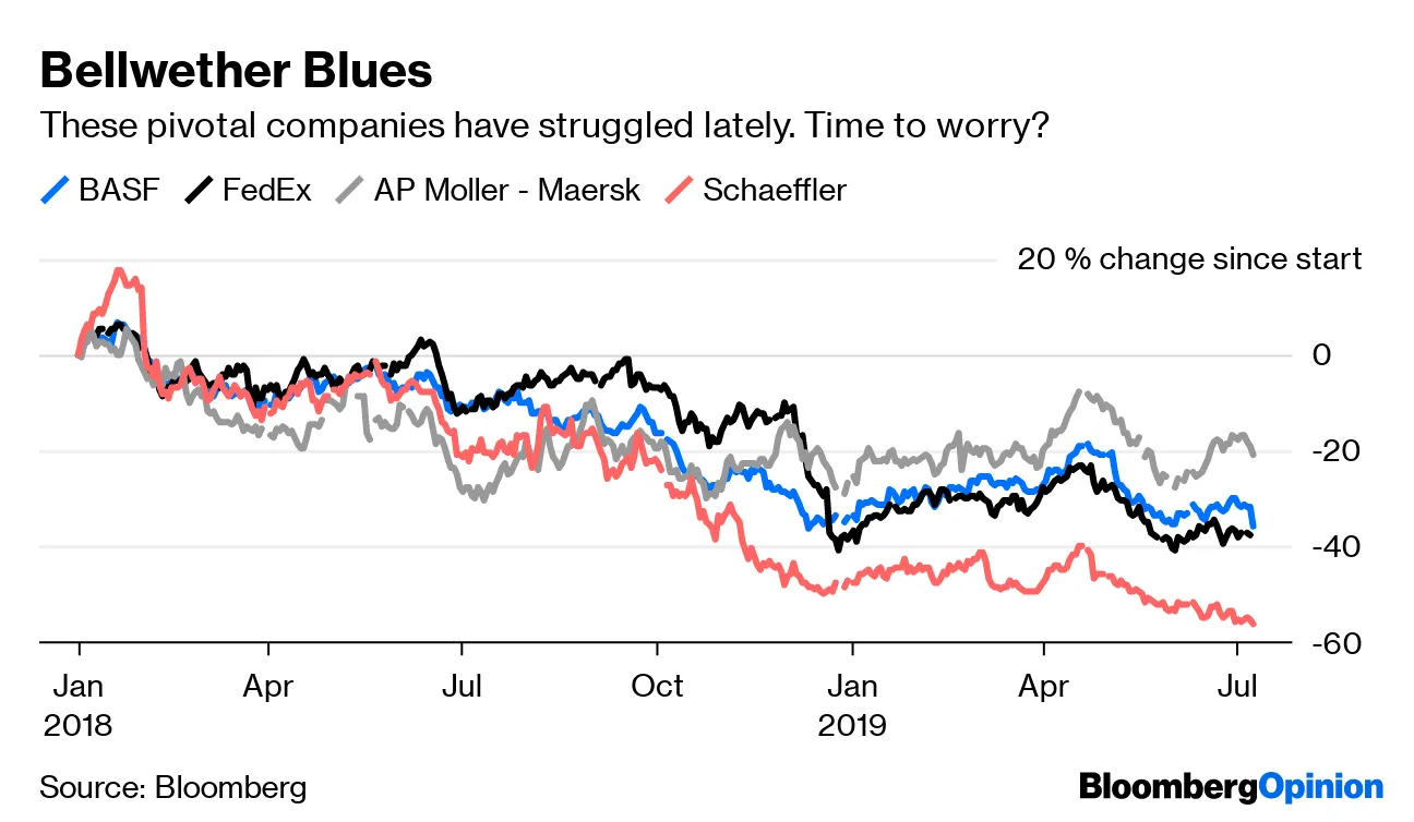 谈到全球贸易放缓,德国化工巨头巴斯夫公司刚刚发布了2019年的盈利警告,这是全球工业的最新警告信号,克里斯·布莱恩特写道。他包括了这张令人不安的图表: