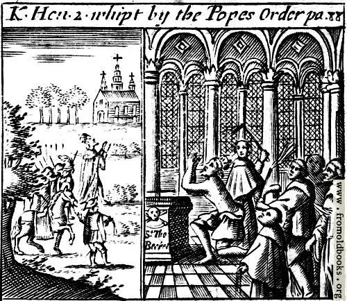 Crise 可能补充说,这种类比对特朗普来说并不一定是健康的。亨利二世的行为激怒了教皇,他最终回到坎特伯雷,在那里接受了僧侣的公开鞭打,以为自己的行为赎罪。特朗普可能会觉得这样的结局很吸引人,但从我在 fromoldbooks.org 找到的这幅当代插图来看,这看起来很痛苦:
