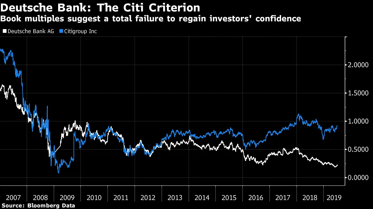 看起来德意志银行的核心问题是它在过去七年中未能做到的事情,而不是金融危机时代的关键错误。令人担忧的是,即使像这样的截肢也未能至今恢复信心。喜欢彭博社的回报点吗?订阅以获得无限访问全球120个国家的可信、基于数据的新闻报道,并获得来自独家每日通讯《彭博开放》和《彭博收盘》的专家分析。