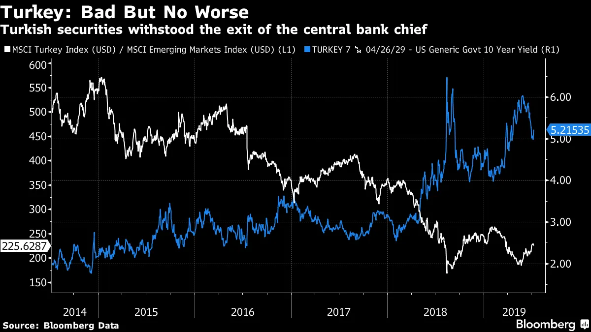 总统可能会说这不好。但可能有一个关键的区别。亨利二世必须面对教皇和教会的权力。而如今相应的权力则掌握在债券市场手中,他们似乎没有惩罚特朗普试图侵犯美联储权力的意图。正如 Crise 指出,土耳其债券市场似乎对该国总统解雇中央银行行长的决定毫不在意。土耳其多年来一直处于危机状态,或接近危机;这一最新的绝望举动似乎并没有对许多投资者产生影响。股票和债券多年来表现不佳。因此,从长远来看,这一最新的创伤几乎没有影响。