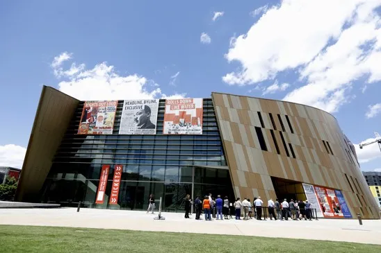 博物馆是一个技术奇迹:超过60%的40万平方英尺的博物馆位于地下,坐落在75英尺高的混凝土容器墙内,以防止水进入。游客首先下降到地下室,底层画廊讲述了在国家成立之前非裔美国人奴隶制的历史,并通过吉姆·克劳和民权时代逐渐上升,最终到达顶层,庆祝黑人音乐、文学和文化。