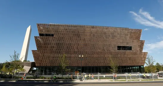 国家非裔美国人历史与文化博物馆的暗金色光泽就是一个例子。由大卫·阿贾耶、弗里伦和已故的J·马克斯·邦德设计的建筑的核心构思是分层的“光环”,模仿传统约鲁巴女神像所戴的冠冕。传统约鲁巴女神像。这一设计标志由3600个铸铝面板组成:铜色屏幕赋予博物馆坚固而低调的外观。
