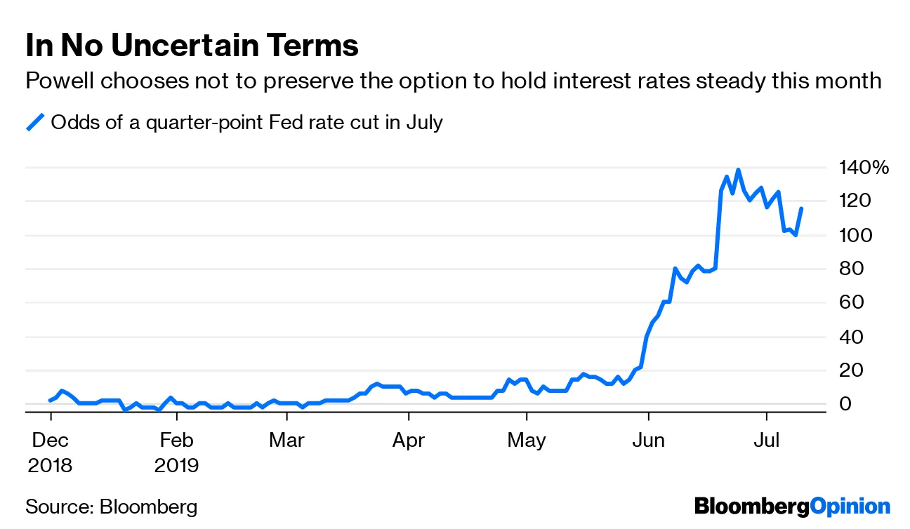 - 鲍威尔主席传达了 他在本月尽快降低借贷成本的意图,告诉众议院中国贸易战风险掩盖了健康的劳动力市场。当被问及6月强于预期的就业报告是否改变了想法时,这位中央银行行长表示:“对您问题的直接回答是,不。”
