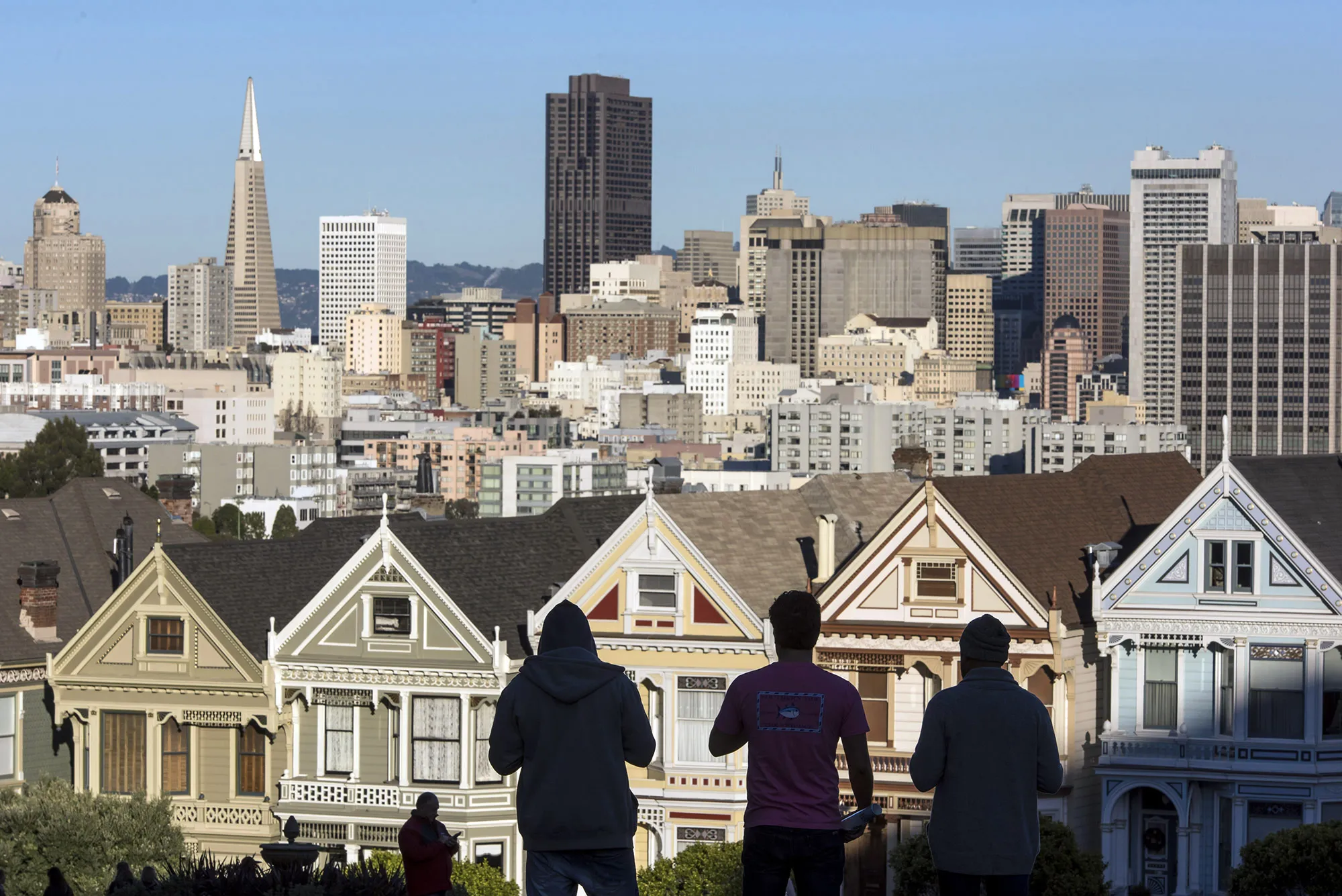 行人的轮廓在加利福尼亚州旧金山的维多利亚式住宅和市中心天际线前站立,时间是2015年12月29日,星期二。截止十月,美国20个城市的房价以更快的速度上涨,因为可用房产的库存紧张,加上需求稳步改善。摄影师:彭博社/彭博社喜欢彭博社的晚间简报吗? 订阅Bloomberg.com。您将获得我们无与伦比的全球新闻报道和两份优质每日通讯,《彭博开盘》和《彭博收盘》,还有更多更多内容。请查看我们的 限时优惠。