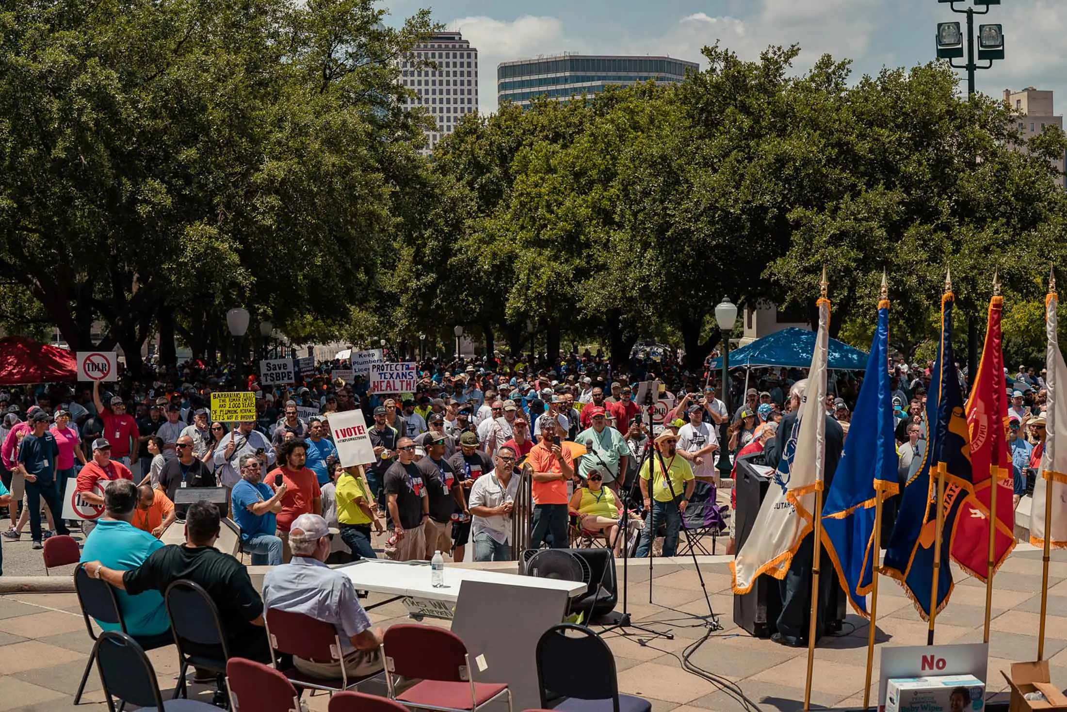 在水管工集会上。摄影师:Lauren Marek 为彭博商业周刊董事会近年来因延迟发放水管工执照而受到批评,特别是在2017年的哈维飓风摧毁了休斯顿地区数千栋房屋之后。由于该机构即将接受立法机构的定期审查,建筑商要求对加快执照发放流程进行更改。这很容易做到。但他们还希望将董事会的监督权交给德克萨斯州许可和监管部门,该部门还负责监控美容师和电工。立法者在5月26日拒绝了这一提案,而一项将董事会按之前的构成续期的临时措施也未能提交表决。