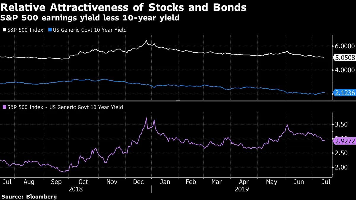上周跨资产交易的定义特征是美国股票能够在安全政府债券的快速 抛售中创下新高。较低的收益率是推动今年股票估值的关键。因此,在 美国和 欧洲的强劲数据之后,向“好消息就是好消息”的背景的初步转变,如果持续下去,将构成重大变化。但这尚未得到美国企业的结果和他们对2020年下半年增长反弹可能性的看法的支持。对此,花旗的利率策略师贾巴兹·马泰解释了这为何重要,以及它如何可能成为限制股票大幅上涨或债券大幅下跌的力量:“2020年标准普尔500指数的盈利预期仍然很高,即使当前年度的预期正在被削减。他写道:“我们为什么关心这个?”“仅仅因为这提高了在下半年某个时候股票贬值的概率,而这反过来应该为美国国债提供支撑。”股票与债券预期收益之间的差距(所谓的美联储模型或普通人所说的股票风险溢价的版本)可能在本周随着第二季度报告期的非正式开始和高管们对未来一年世界状况的思考而浮出水面。