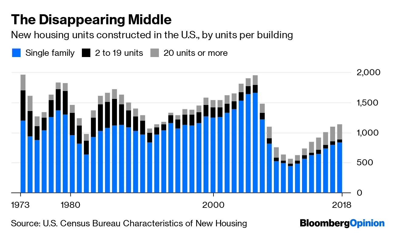 开发商几乎已经放弃了建造中型住宅建筑,这在多个方面使美国更加两极化,贾斯廷·福克斯写道。