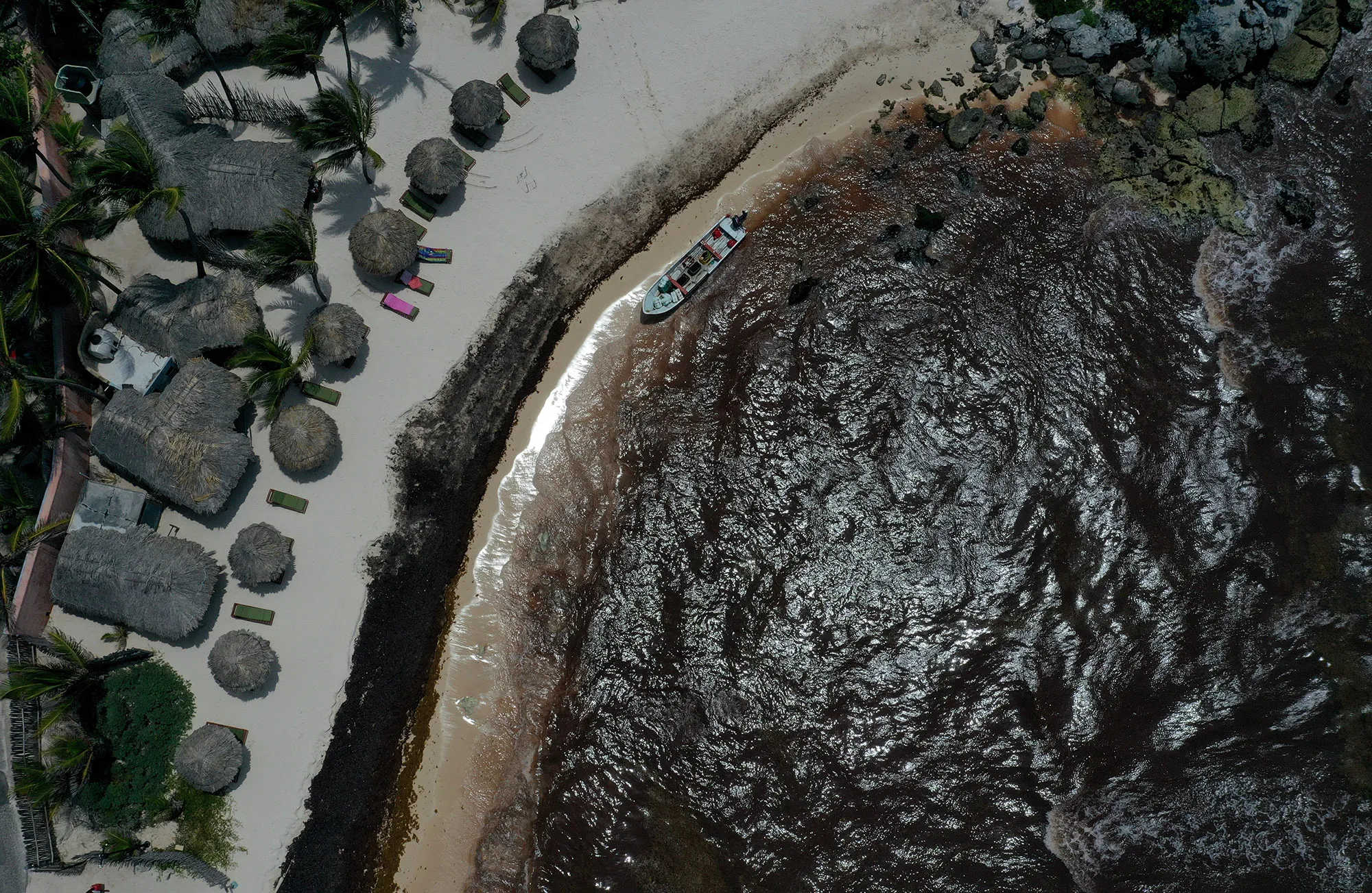 2019年6月15日,在墨西哥图卢姆,度假区附近的水因海藻而变成棕色。摄影师:贾斯廷·沙利文/盖蒂图片社多年来,坎昆依赖一个简单的公式——便宜的啤酒、灿烂的阳光和原始的加勒比海滩——吸引数百万游客。但在过去几个月中,这个公式的最后一部分被海藻类藻类的入侵所污染。