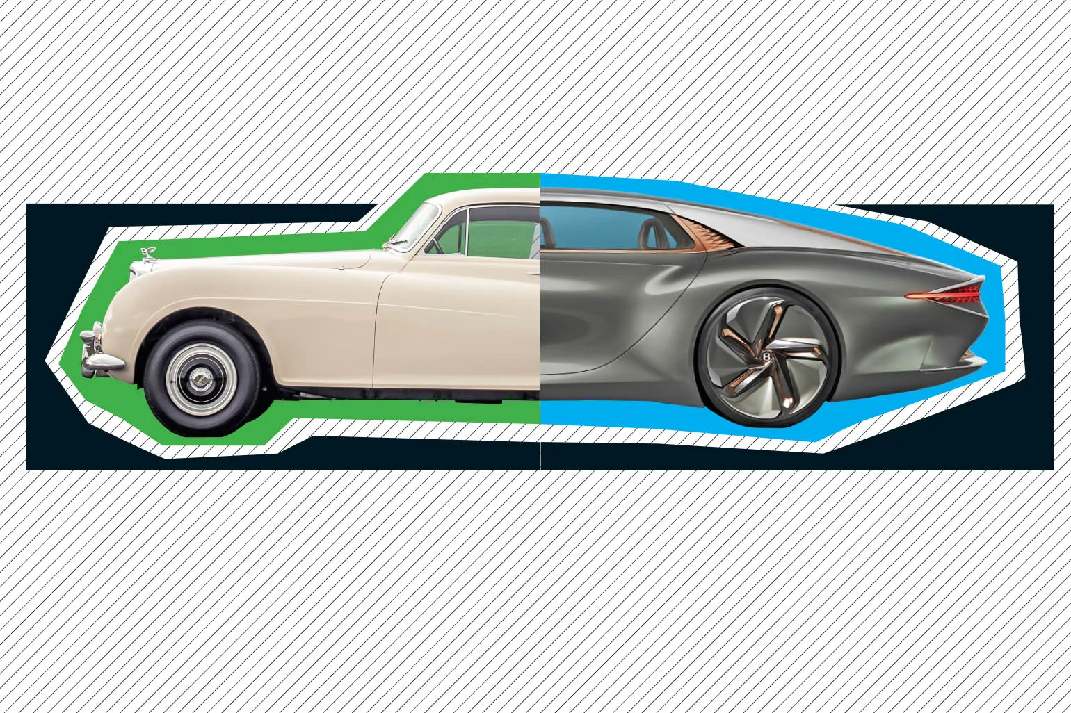 1952年宾利R-Type Continental的前半部分;EXP 100 GT概念车的后半部分。照片插图:彭博社