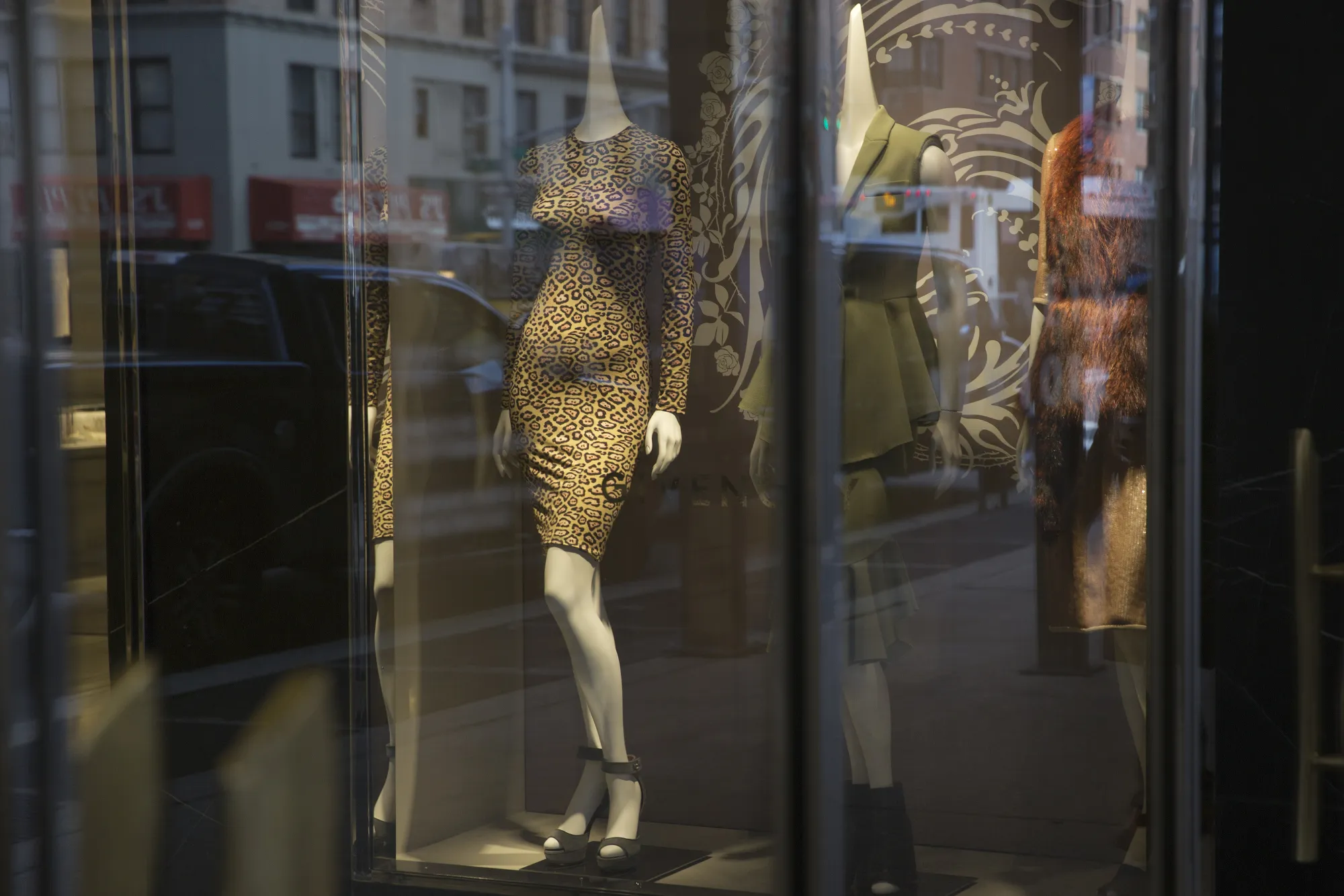 模特在纽约的橱窗展示中站立。摄影师:维克托·J·布鲁/30186440A摄影师:维克托·J·布鲁/彭博社