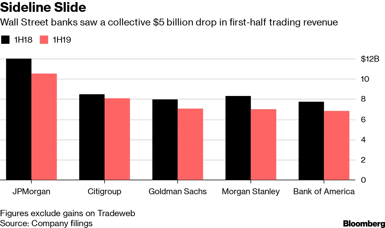 - 本周的财务结果揭示了十多年来最负面的上半年交易收入环境。银行首席执行官表示,交易客户“在观望”。贷款机构已削减成本,但这对交易员或投资者并没有太大安慰。