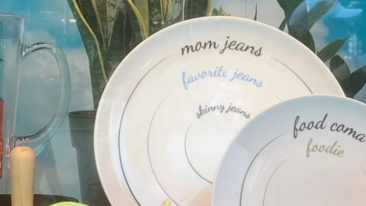 **妈妈牛仔裤红旗:**梅西百货撤回了在其旗舰纽约店销售的盘子,此前Twitter因“胖羞辱”的投诉而沸腾,《商业内幕》报道。播客主持人阿莉·沃德发了一张照片(如下)并配文“我如何能让这些盘子在@Macys被禁止在所有50个州销售。”随之而来的是愤怒,梅西百货不久后妥协,表示它“在这个产品上失误了。”