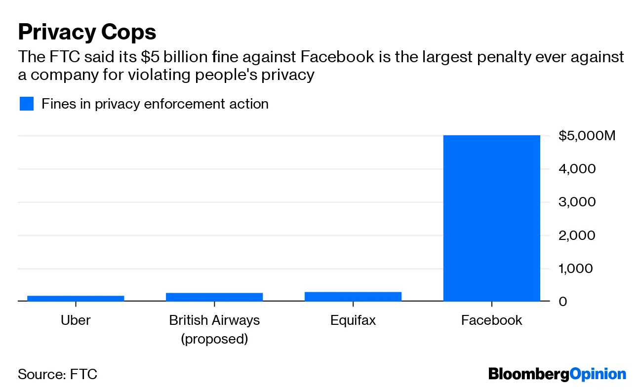 今天对Facebook来说代价不菲。它同意支付创纪录的50亿美元来解决FTC的隐私索赔,并表示将支付1亿美元以应对SEC对数据滥用的指控,与剑桥分析丑闻相关。解决了这些问题后,它表示在市场收盘后还被调查是否存在潜在的反垄断违规行为。