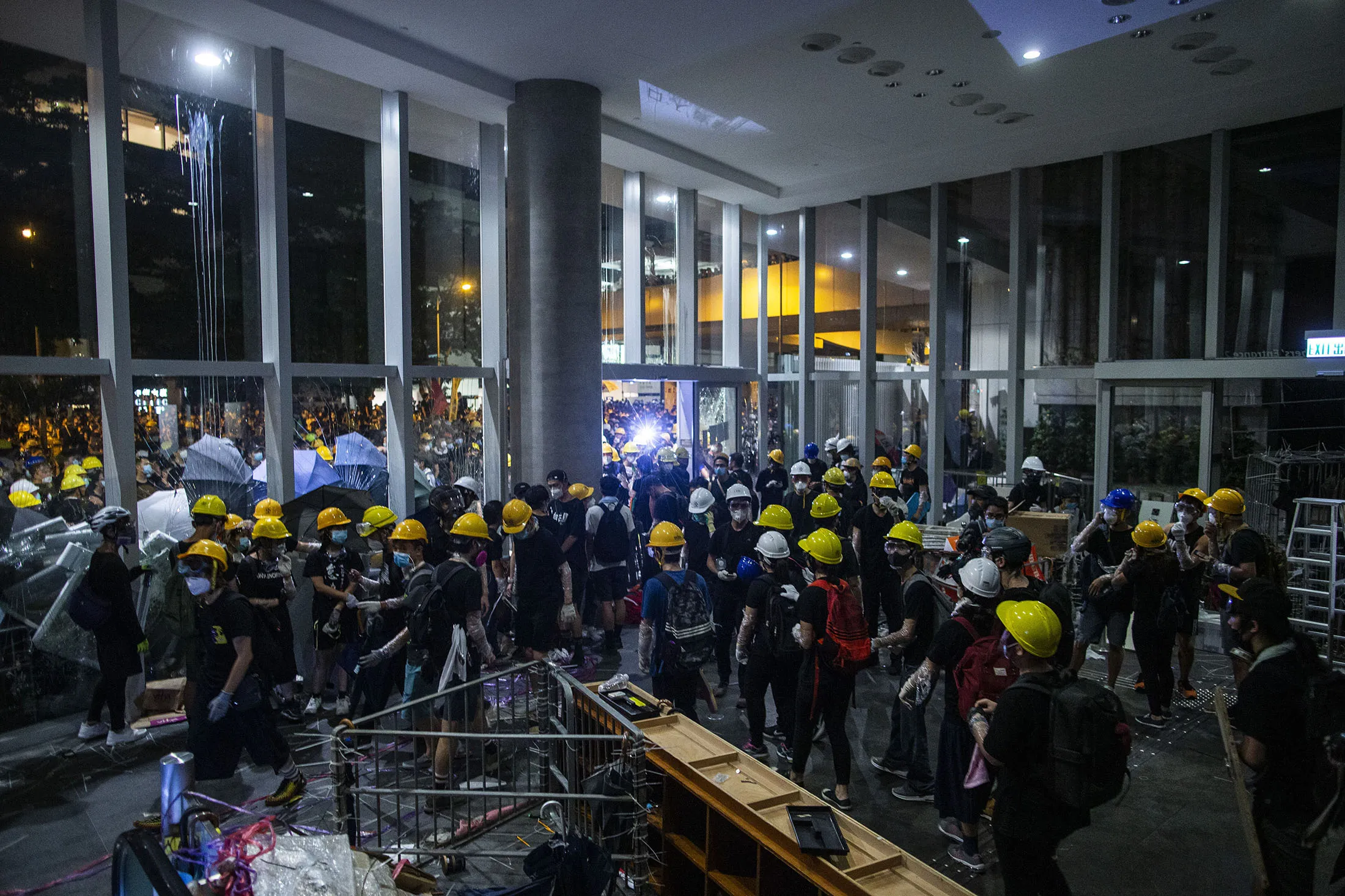 抗议者于7月1日聚集在立法会内。摄影师:贾斯廷·陈/彭博社“我不明白他们为什么要闯入立法会——打破一扇玻璃门能得到什么呢?”她说。“但我理解他们的愤怒。因为到目前为止,政府既没有撤回法律,也没有回应抗议者的要求。”