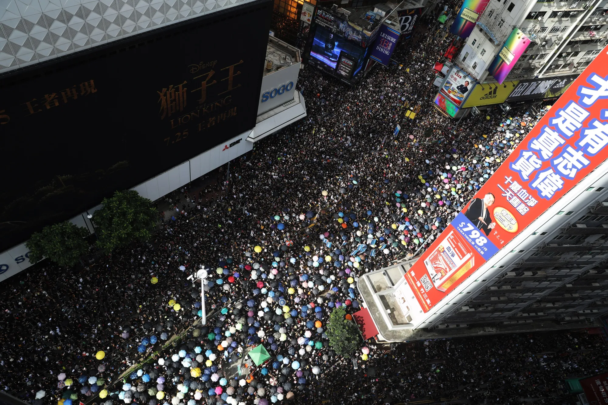示威者于7月21日在香港铜锣湾地区游行。