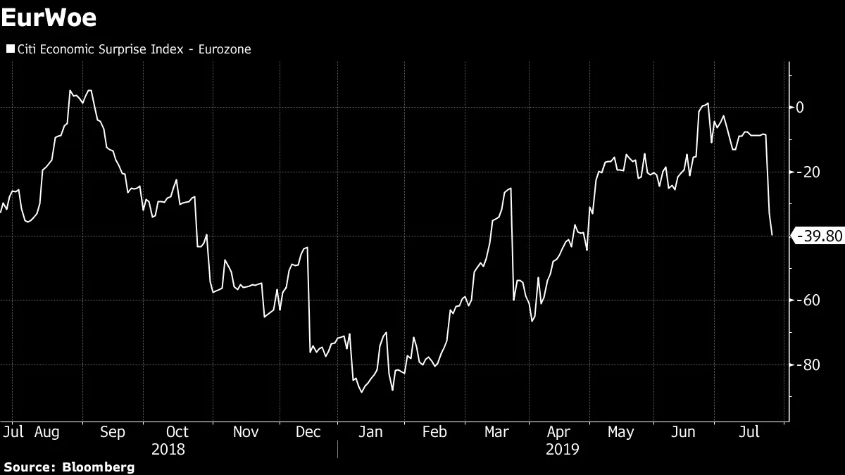 眼前的巨大问题是:这不应该是,也不是,欧洲所需要的。彭博社的两篇报道突显了对欧洲政策制定的批评。德国银行抱怨“毁灭性的”低利率,而财政政策制定者则准备绝对不采取任何措施来促进活动。