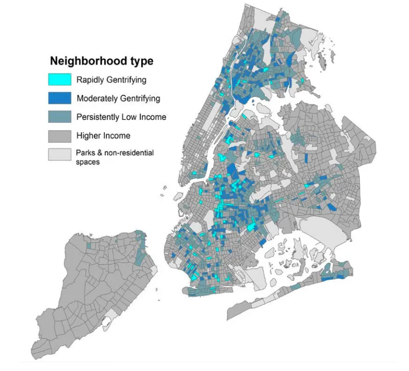 “我们的结论不是,‘我们不需要担心城市更新。’我们不想淡化纽约市及全国各地租户对住房稳定感到的焦虑,”古尔德·艾伦说。“人们,尤其是低收入家庭,承受着巨大的住房成本负担,确实担心失去他们的家和社区。”
