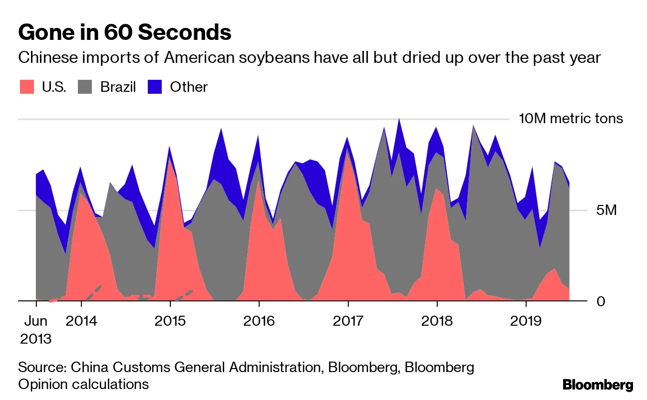美国不应指望中国购买更多的农产品,大卫·菲克林在彭博社观点中写道。中国开始从其他国家采购,这种临时措施可能会变得持久,尤其是在当前的贸易紧张局势之后,这对双方造成了持久的打击。