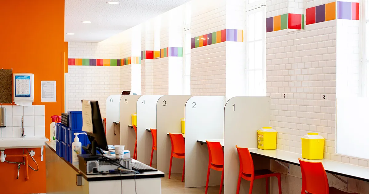 巴黎的监督消费室一次可以接待多达16人。巴黎的监督消费室。摄影师:朱莉·格拉斯伯格 / 彭博商业周刊