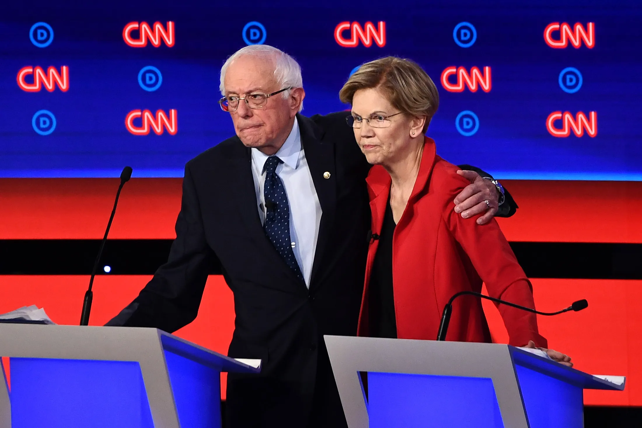 伯尼·桑德斯(左)和伊丽莎白·沃伦于7月30日在密歇根州底特律。摄影师:布伦丹·斯米亚洛夫斯基/法新社伯尼·桑德斯(左)和伊丽莎白·沃伦。摄影师:布伦丹·斯米亚洛夫斯基/法新社通过Getty Images