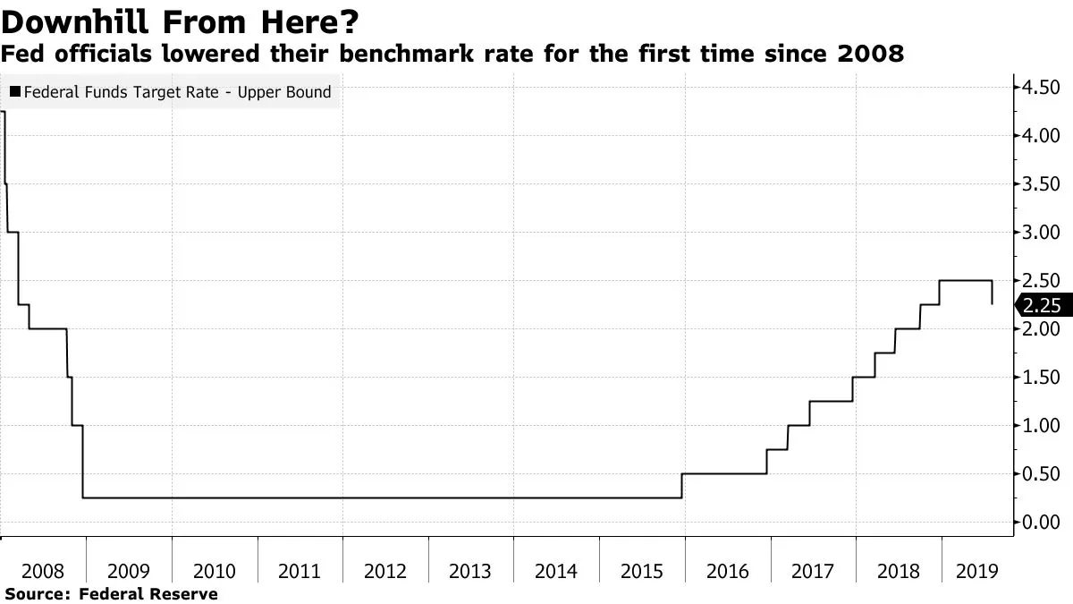 - 今天的举措是自金融危机以来的首次降息,旨在“防范下行风险”,鲍威尔表示。虽然大多数人押注于25个基点的降息,但一些人希望这可能意味着中期内更多的宽松。他们确实 降低了预期。