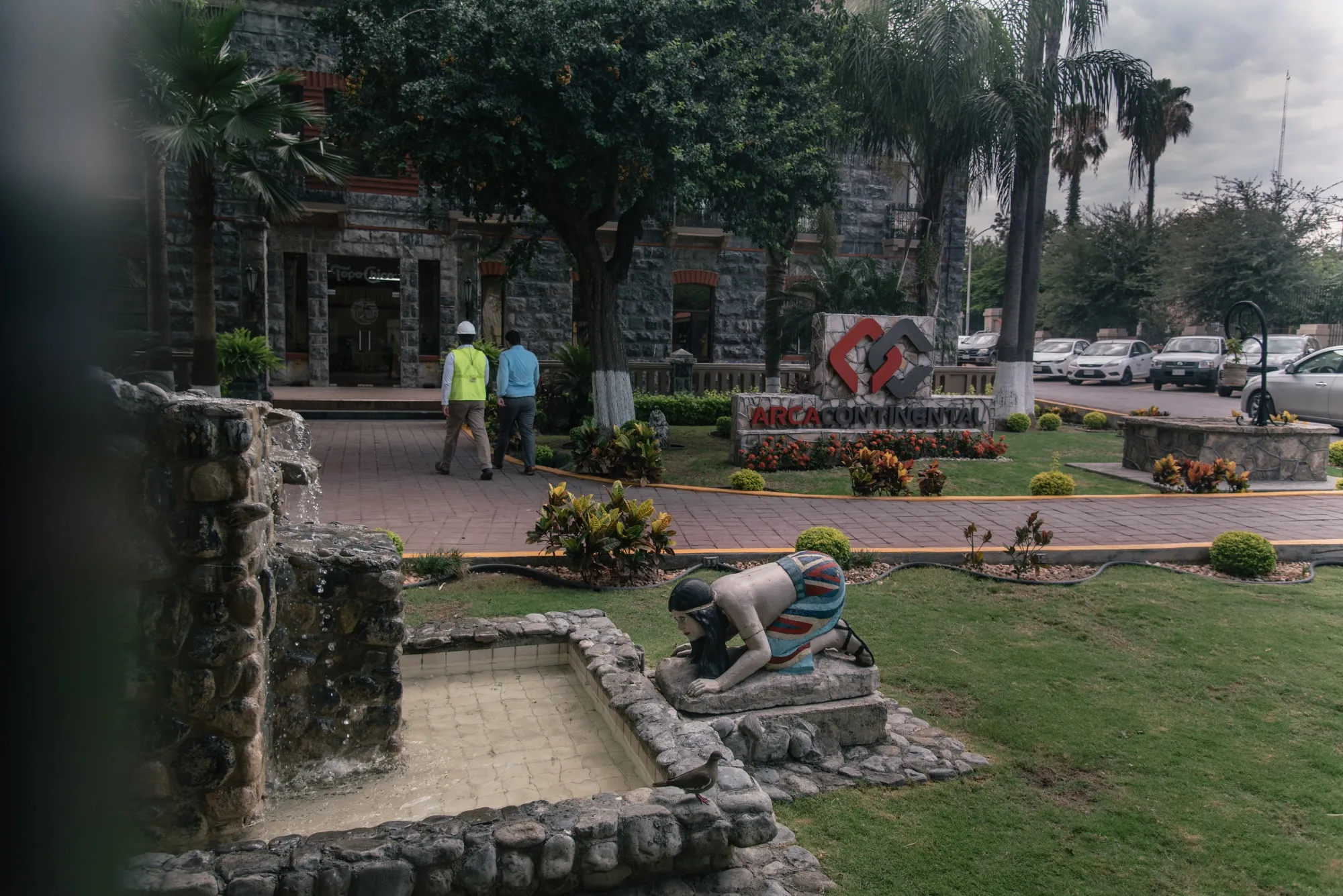 Topo Chico总部外的喷泉。摄影师:路易斯·安东尼奥·罗哈斯/彭博社Topo Chico的办公室位于一座前精品酒店,距离蒙特雷市中心约15分钟车程——这是一座两层的大理石建筑,红砖窗框、巴洛克风格的阳台以及外面的古董街灯和棕榈树。根据公司介绍,水在附近的工厂进行处理,添加了一些CO₂以弥补在净化过程中失去的一些矿物质。Topo Chico的粉丝们对其清爽的口感赞不绝口,甚至说它可以用作解酒药。