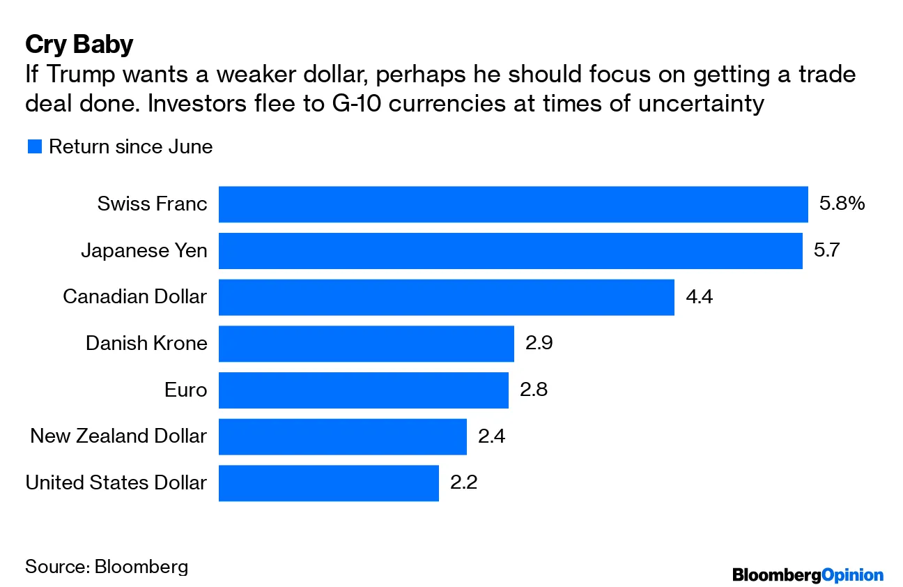 美国将中国标记为货币操纵者只是空口无凭,但特朗普可以利用这一标签和随之而来的市场紧张作为他推动降息的工具,Shuli Ren在《彭博社观点》中写道。为了让美元贬值,他应该专注于达成贸易协议,因为当贸易战升级时,投资者自然会逃向发达国家债券的避风港。