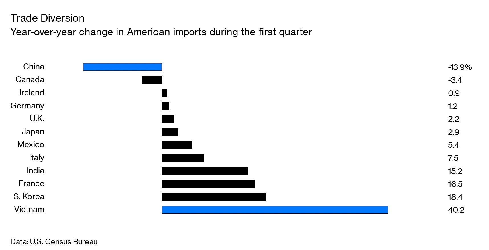 越南从中美贸易争端中受益匪浅,以至于它也面临被美国征收惩罚性关税的风险。其领导人现在正试图说服特朗普政府,他们是公平的贸易者,因为他们希望保护自己日益增长的美国出口。但如果真的被征收更多关税,越南可能会比中国更具妥协性,原因很简单:它比美国更需要美国。