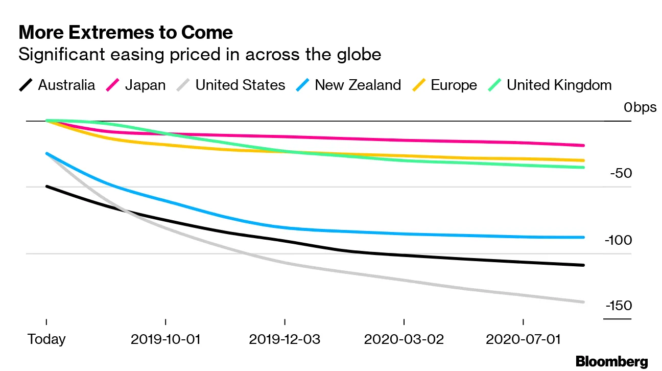- **不仅仅是英格兰银行。**利率竞相下调的竞赛已经开始。市场现在预计美联储、欧洲央行、日本银行和其他中央银行将降息超过400个基点。随着宽松政策无法抵消贸易冲突的升级,可能会有更多的降息,彭博社利率策略师斯蒂芬·斯普拉特表示。