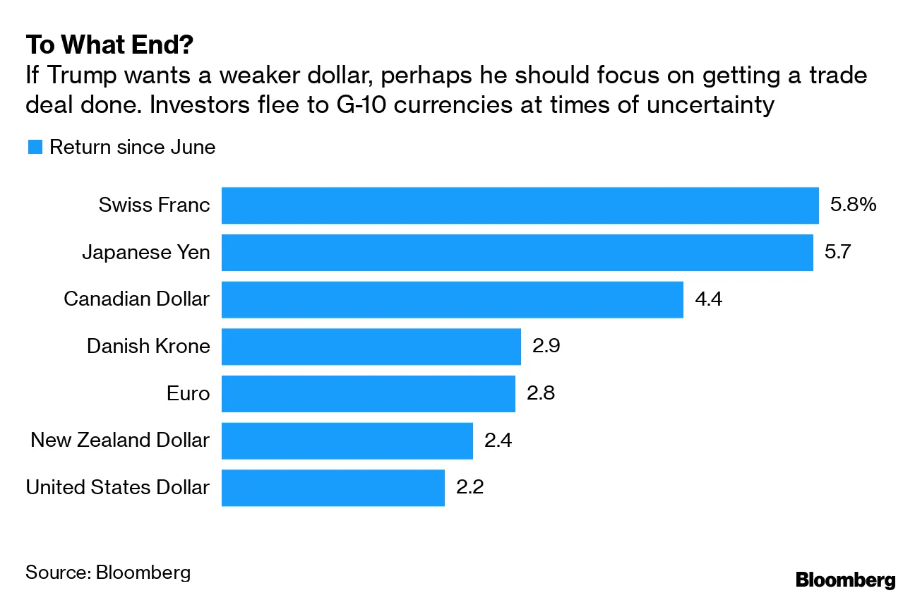 美国将中国标记为 货币操纵国是 空口无凭,但特朗普可以利用这一标签和随之而来的市场紧张作为他推动降息的工具,Shuli Ren 在彭博社观点中写道。为了让美元走弱,他应该专注于达成贸易协议,因为当贸易战升级时,投资者自然会逃向发达国家债券的避风港。