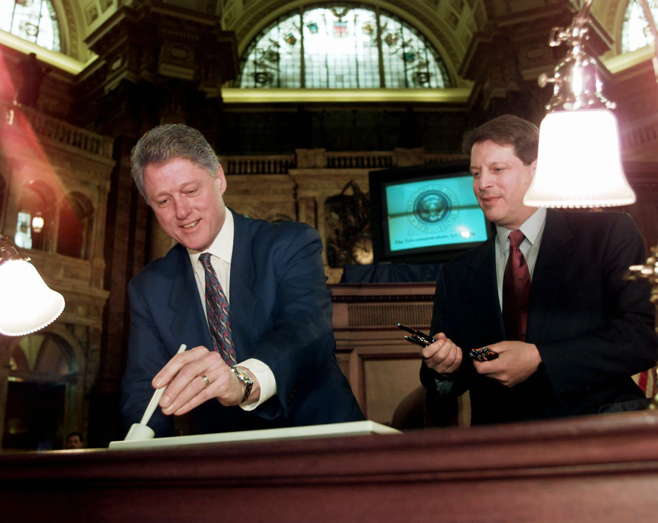 几个月后,当众议院和参议院的成员会面以调和他们法案之间的差异时,他们将埃克森的惩罚条款和考克斯与怀登的免疫条款塞入最终文本,留给法院去理清矛盾。1996年2月8日,克林顿总统签署了整个法案。