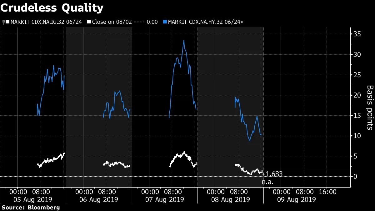 投资级CDX——对原油的依赖较小——与股票的走势更加一致,但本周仍略微扩大。