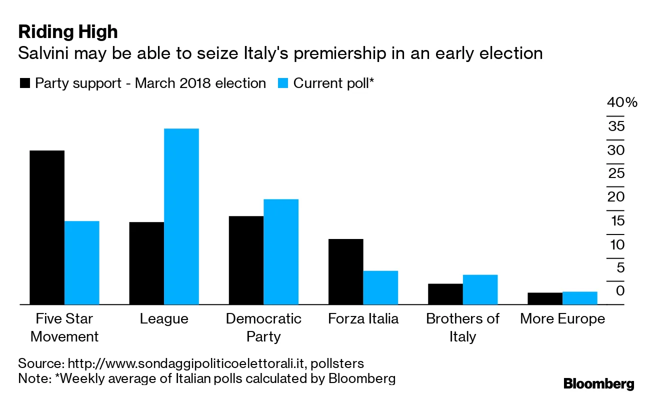 - 新选举几乎肯定会使联盟党成为意大利议会的主导力量,彭博社观点专栏作家费尔迪南多·朱利亚诺写道。那么,萨尔维尼为什么花了这么长时间?