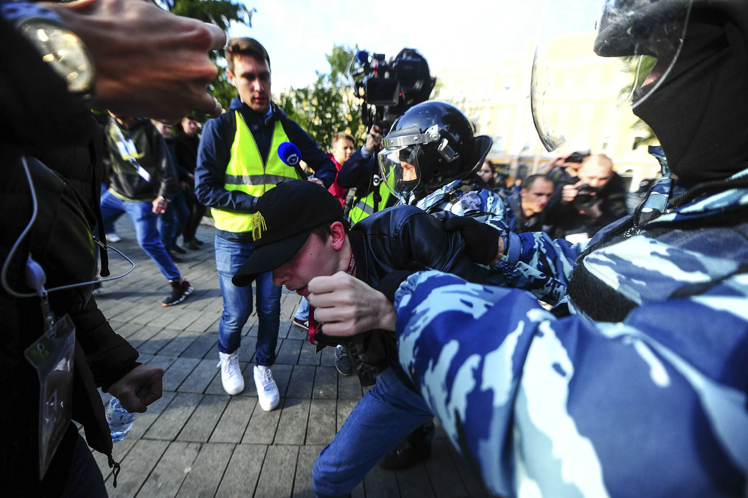莫斯科的警察在8月10日将一名抗议者拘留。照片:安纳多卢通讯社通过盖蒂图片社自7月以来,抗议-逮捕循环已成为莫斯科的每周常态,尽管警方的镇压升级导致了数千人被拘留。一些人面临根据“群体骚乱”法规被判五年或更长时间的监禁,这些法规旨在镇压骚乱,而不是克里姆林宫反对者所发起的和平集会。在至少一个案例中,警方威胁要剥夺一对带着幼儿参加抗议的夫妇的监护权。当局已部署数千名防暴警察和调查人员,并匆忙组织音乐和美食节——包括一个名为“肉与节拍”的不幸活动——以转移潜在抗议者的注意力。
