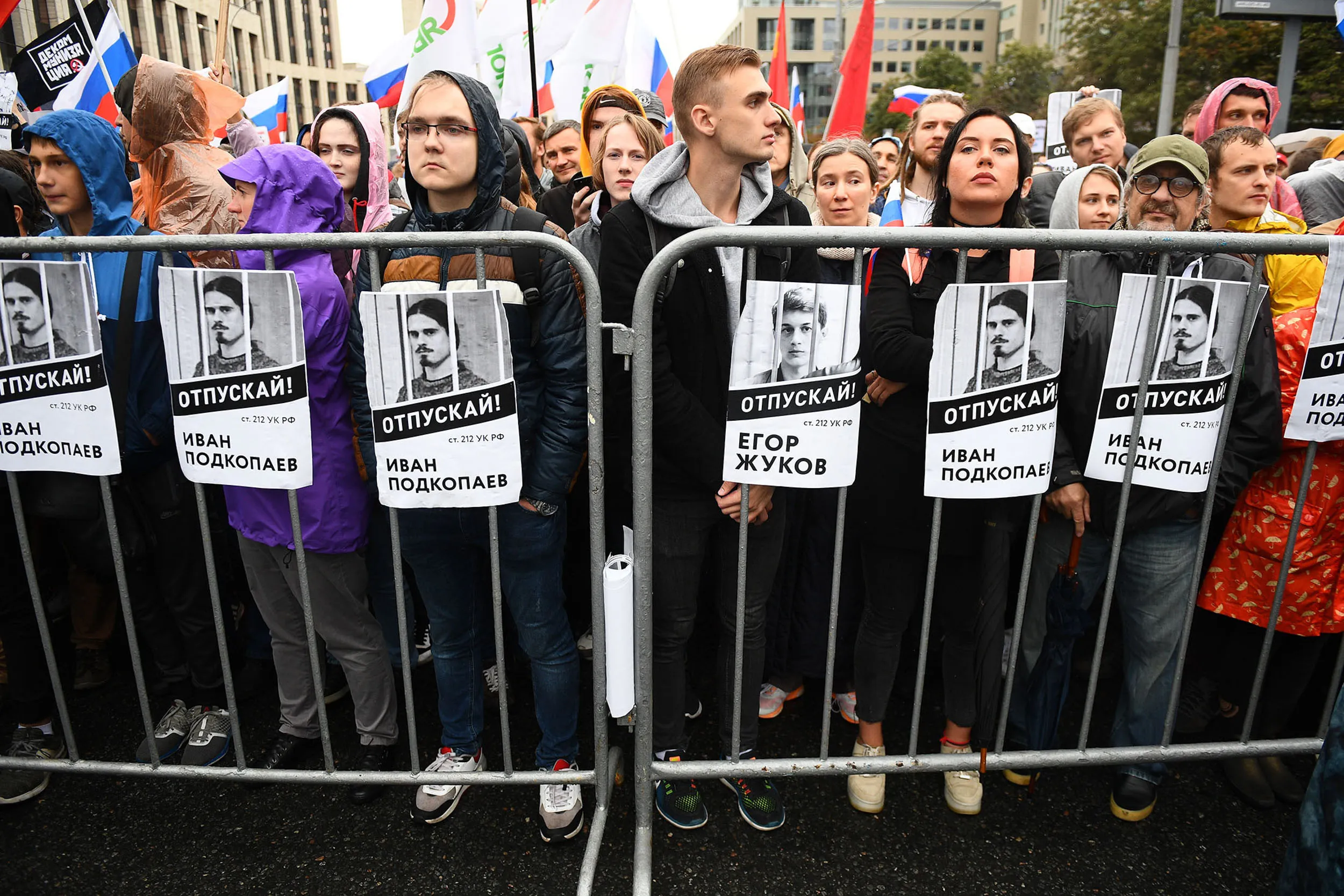 摄影师:米哈伊尔·斯维特洛夫/盖蒂图片社叶夫根尼·杜比宁之前从未参加过政治抗议。但他对莫斯科当局拒绝注册反对派候选人参加市议会选举感到非常愤怒,以至于他无法待在家里。“他们剥夺了人们投票的权利,告诉他们该投谁,”这位44岁的商业经理在前往7月底被当局拒绝许可的首都主要街道特维尔斯卡亚的示威途中说道。“如果人们现在不为他们最后剩下的权利站出来,”他说,“他们将失去其他一切。”