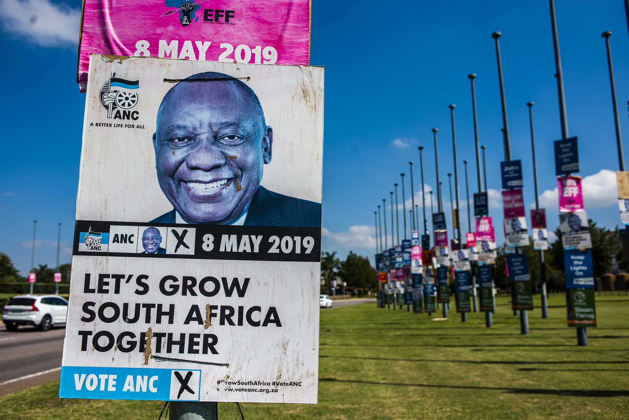 在比勒陀利亚的一张大选宣传海报。摄影师:瓦尔多·斯维格斯/彭博社总统面临的政治挑战不仅限于非洲人国民大会。发挥关键作用的强大工会似乎意图破坏将国有电力公司Eskom Holdings SOC Ltd扭转局面的努力。他们拒绝削减其庞大的员工队伍和将其分拆为三个更易管理的运营单位的计划。总统还与国家反腐败监察专员陷入法律斗争,后者指控他未披露一笔竞选捐款。