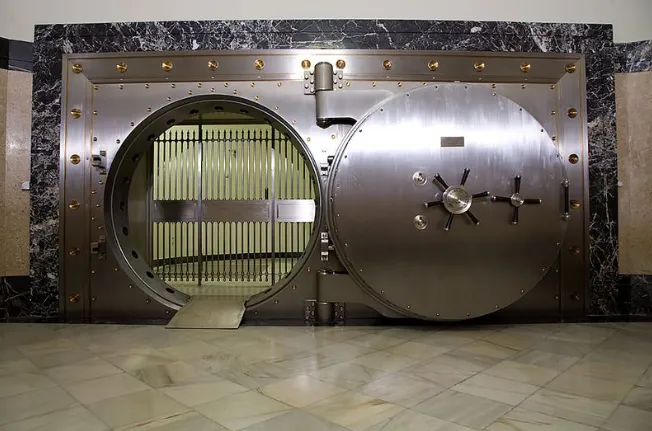 当Netflix系列剧 《纸钞屋》中的一个盗贼 穿上潜水装备游过西班牙银行的一个被淹没的金库时,这一特技似乎堪比詹姆斯·邦德的反派。但这基于 西班牙中央银行 的现实安全防御措施。除了金库中一个在金条盗贼闯入时会被水淹没的房间外,还有三扇钢门。第一扇也是最大的,重达16.5公吨(18.2美国吨),通向一个35米(115英尺)的电梯井,直通一个前室。前室通过一个可收缩的吊桥通向第二扇装甲门。好莱坞,你心里有数吧。