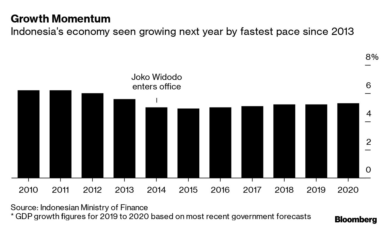 - 印尼的佐科·维多多也传来了好消息。东南亚最大的经济体预计明年将增长5.3%,是七年来最快的增速。尽管其他经济体正在放缓,印尼“必须能够增长,任何危机都必须转变为机会,”总统在年度预算演讲中表示。