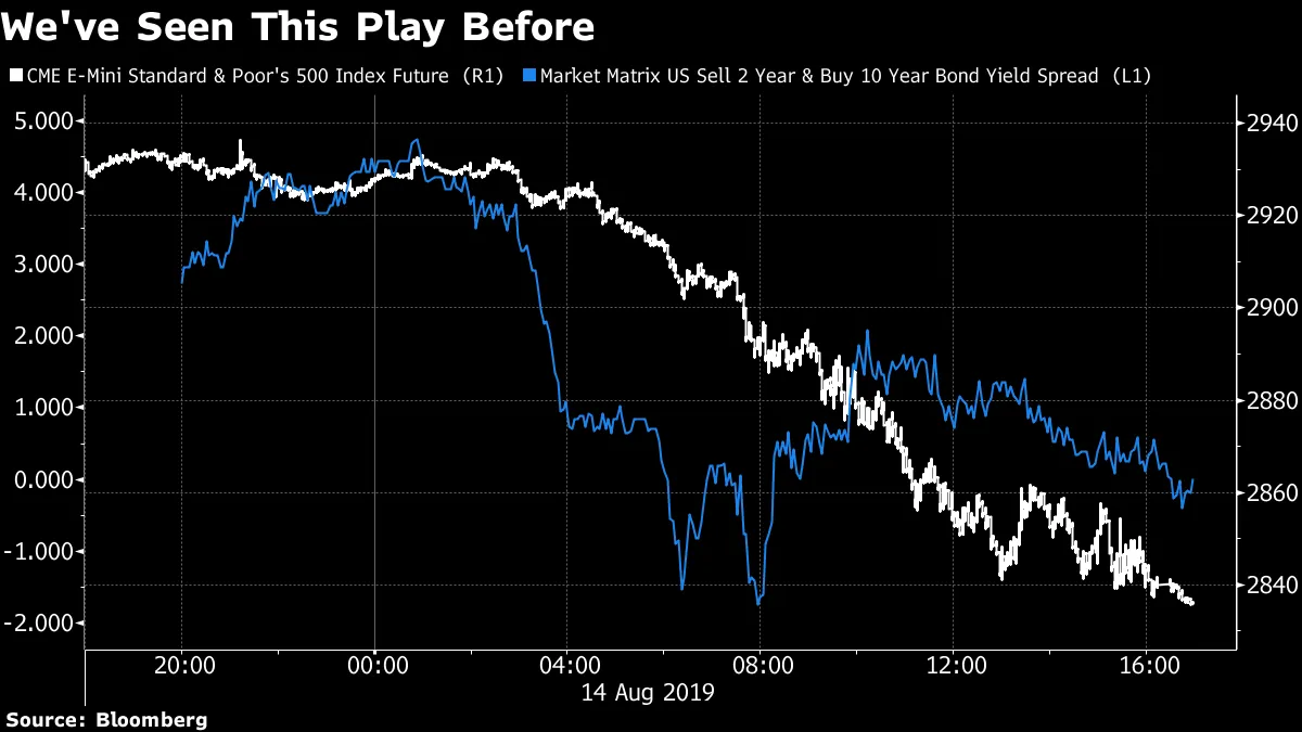 考虑到这些地区的股权回报不尽如人意,美国股市在10年期收益率下滑中的重创就更有意义了——这延续了一个主题,即较低的利率不再对风险资产产生积极影响,这与2019年上半年大部分时间的情况形成对比。同样,我们在3个月和10年期收益率倒挂时也看到了相同的反射性抛售。