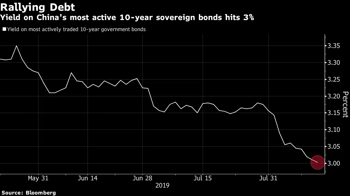 中国的10年期收益率首次达到3%,这是自2016年以来的首次。
