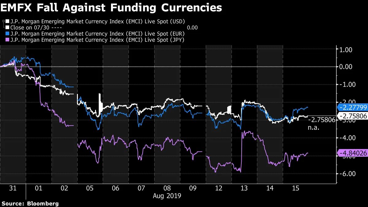 但这种特有的冲击可能会迫使投资者重新评估他们投资组合中对新兴市场收益的暴露程度。尤其是自美联储降息以来,三种最受欢迎的融资货币——美元、欧元和日元——都对一篮子新兴市场外汇大幅反弹。