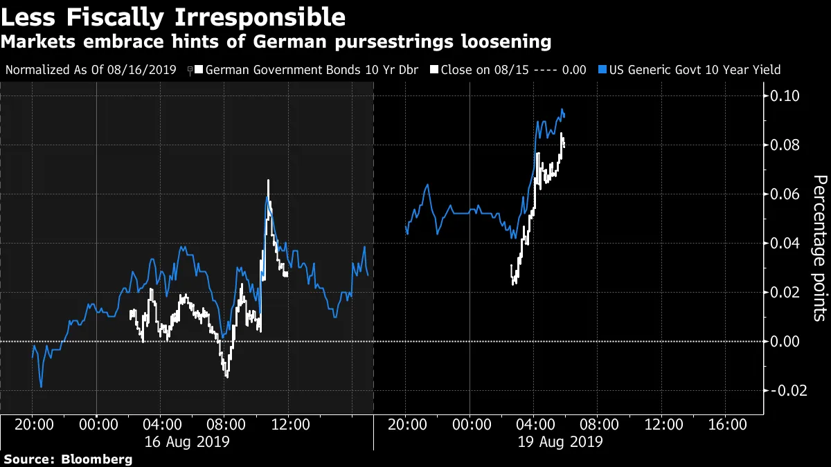 周五,全球市场传来欢呼声,消息称德国愿意 重新审视 自我施加的财政紧缩。自《明镜》报道德国将在经济陷入衰退时放宽预算限制以来,十年期德国国债和美国国债收益率几乎上涨了10个基点。财政部长奥拉夫·肖尔茨随后 补充,如果需要,财政响应可能会与金融危机后提供的支持相当。虽然不想破坏气氛,但这种情况引发了市场基本情况有多负面的疑问。欧洲最大的经济体必须看到产出连续两个季度下降——这一数据要到11月中旬才能告诉我们——才能考虑财政刺激。这是个好消息!“我们认为,需要劳动力市场显著恶化才能触发大胆的财政行动,而硬数据并不支持这一点,”经济学家巴巴拉·博特彻和迪特尔·布劳宁写道。对比美联储的做法——每当市场或经济出现问题时最常见的替罪羊——和德国政府在避免和减轻困难方面的做法。主席杰罗姆·鲍威尔认为,一盎司的 预防胜过一磅的治疗。德国财政政策制定者仍然致力于在施用任何药物之前让疾病恶化。因此,人们不禁想知道这种组合是否提高了德国数据与金融市场之间形成一种反常的“坏消息是好消息”关系的可能性。美联储愿意采取主动,但安格拉·默克尔则不愿。