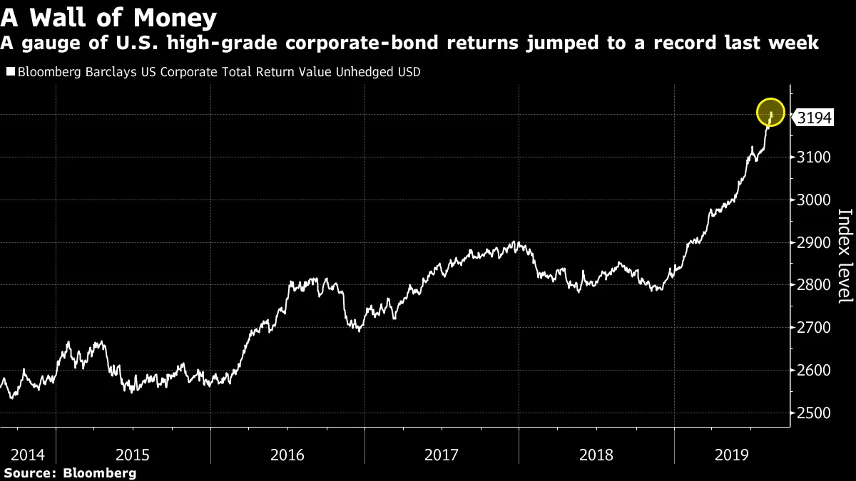目前债券市场上有一些惊人的统计数据。美国银行美林证券的策略师汉斯·米克尔森指出,非美国政府债务的平均收益率首次为负,达到-3个基点。这意味着收益率现在是“美国制造的现象”,根据BofAML的估计,全球95%的可用正收益投资级债务来自美国资产。不出所料,这导致大量资金涌入美国公司债券,因为外国投资者逃离欧洲和日本的负利率(米克尔森称之为“新资金的墙”)。