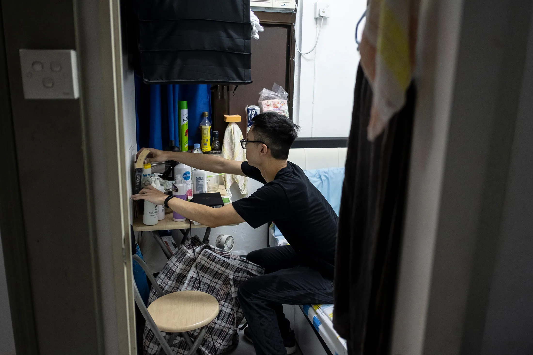 比利·唐住在一个被隔成六个租户的香港公寓里。