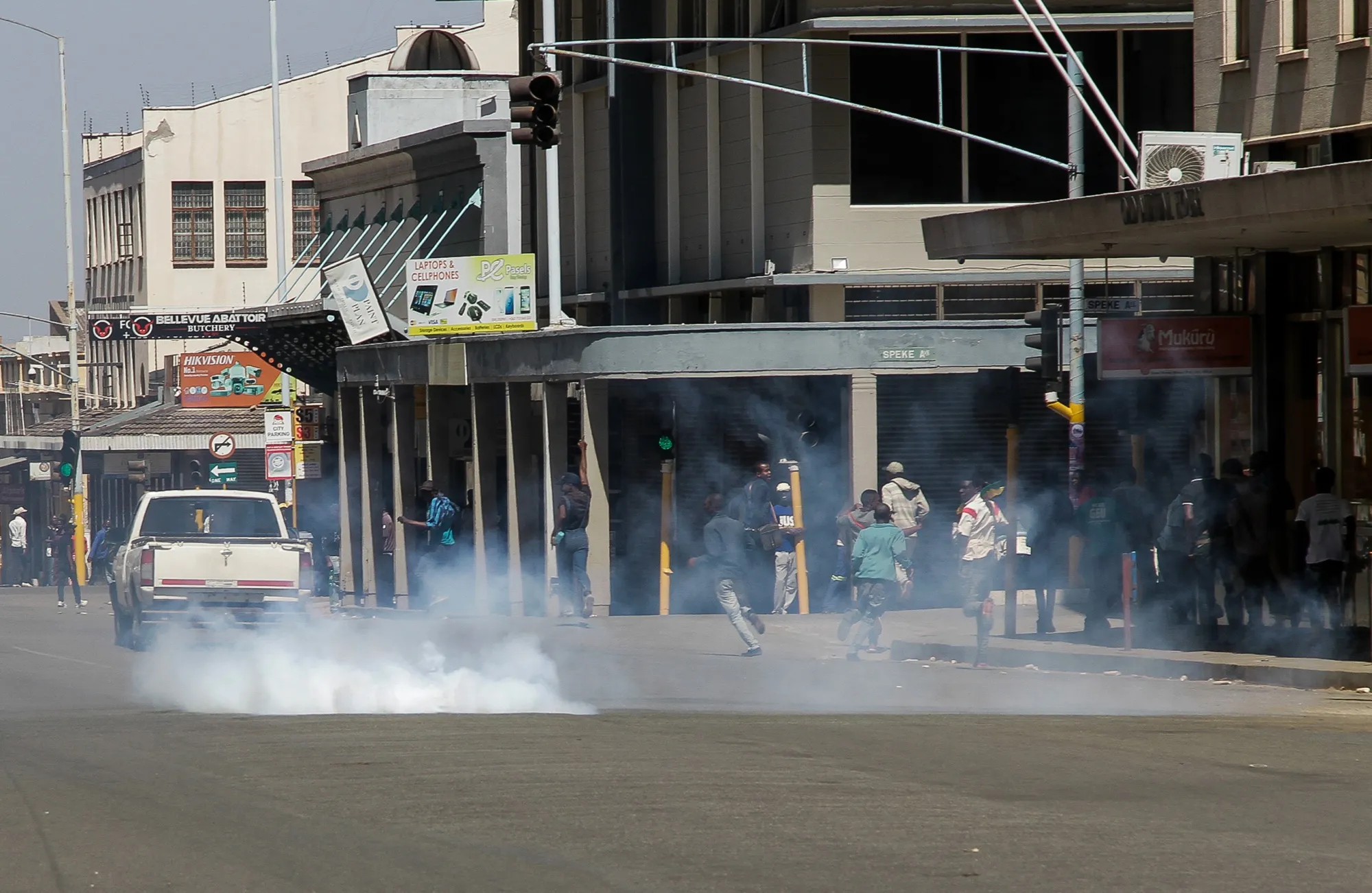 抗议者在8月16日津巴布韦哈拉雷被警察发射催泪弹驱散。该国主要反对党民主变革运动呼吁抗议总统埃默森·姆南加古瓦及其政府对经济的管理。