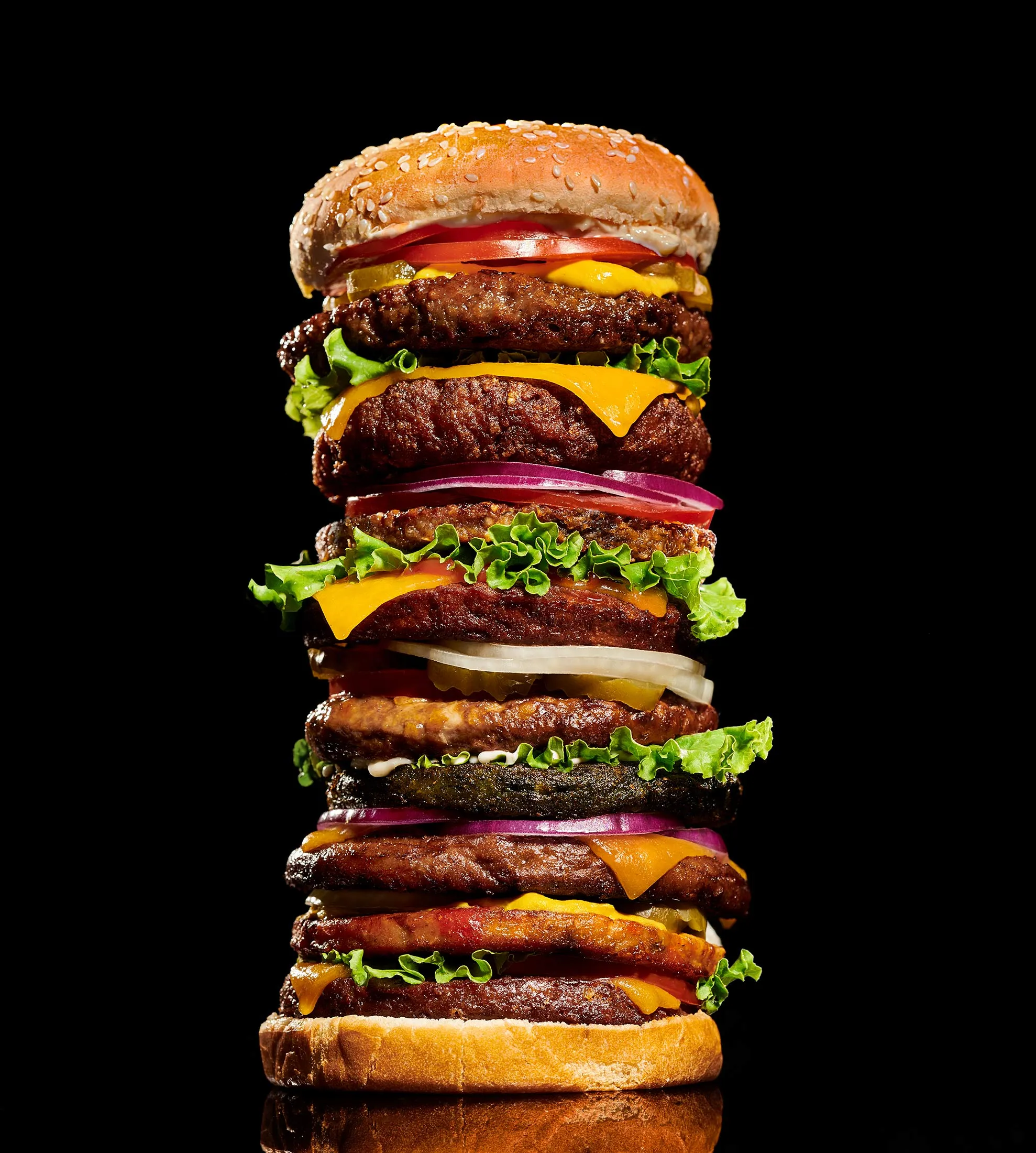 无肉汉堡的演变。从下到上:Boca All American Veggie Burger、MorningStar Farms Garden Veggie Burger、Gardein Ultimate Beefless Burger、Dr. Praeger’s Super Greens Veggie Burger、Quorn Meatless Gourmet Burger、MorningStar Farms Grillers Prime Burger、Amy’s California Veggie Burger、Beyond Burger和Impossible Burger。摄影师:汉娜·惠特克为《彭博商业周刊》拍摄植物性食品在健康和环境方面都符合标准,或者至少这是人们的看法。去年,Mintel集团有限公司对消费者的调查中,近三分之一的人表示他们认为植物性汉堡比动物性汉堡更健康。随着人们对牛肉对环境影响的认识不断传播——畜牧业约占人类制造温室气体的14.5%,其中约41%来自牛肉——素食替代品变得更加吸引人。根据尼尔森控股公司的数据,零售销售证明了这些变化的态度,在截至5月25日的一年中,美国的肉类替代品销售额达到了8.95亿美元。这与实际肉类的900亿美元销售额相比微不足道,如果消费者注意到假肉的卡路里增长可能会放缓。但对投资者来说,这只是个开始。